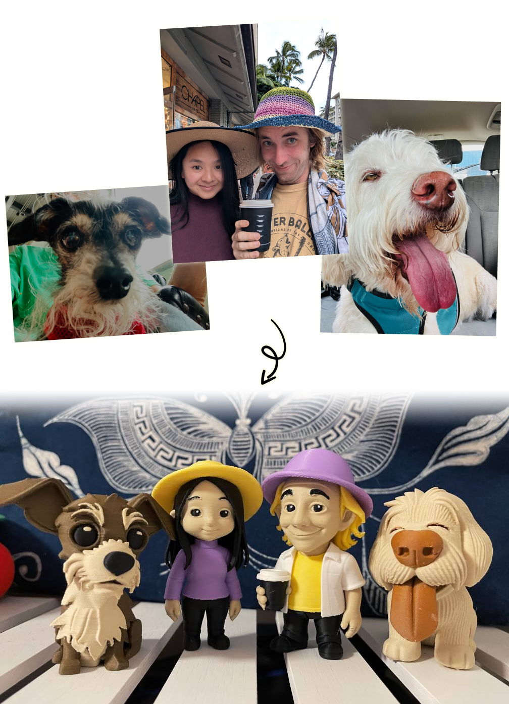Create bespoke figurines from your photos. The perfect way to celebrate your favorite people and animal friends.